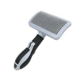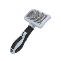 Make grooming as easy as 1, 2, 3 with help from the Self-Cleaning Dog Slicker Brush. You’ll appreciate the simplicity of clean-up time and your pup will love the extra time you can spend with her! One-touch of the button and the brush pins retract, allowing fur to fall away. Simply wipe the pad clean, reposition the button, and you’re ready to groom again! Stainless steel pins provide the very best results when brushing your canine companion, keeping her coat looking clean and healthy.